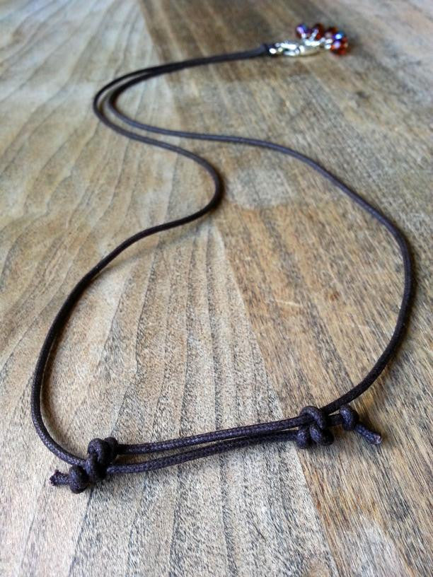 Topaz Stitch Marker Necklace, Pewter Clasp and Czech Crystal on 30" Adjustable Cotton Cord