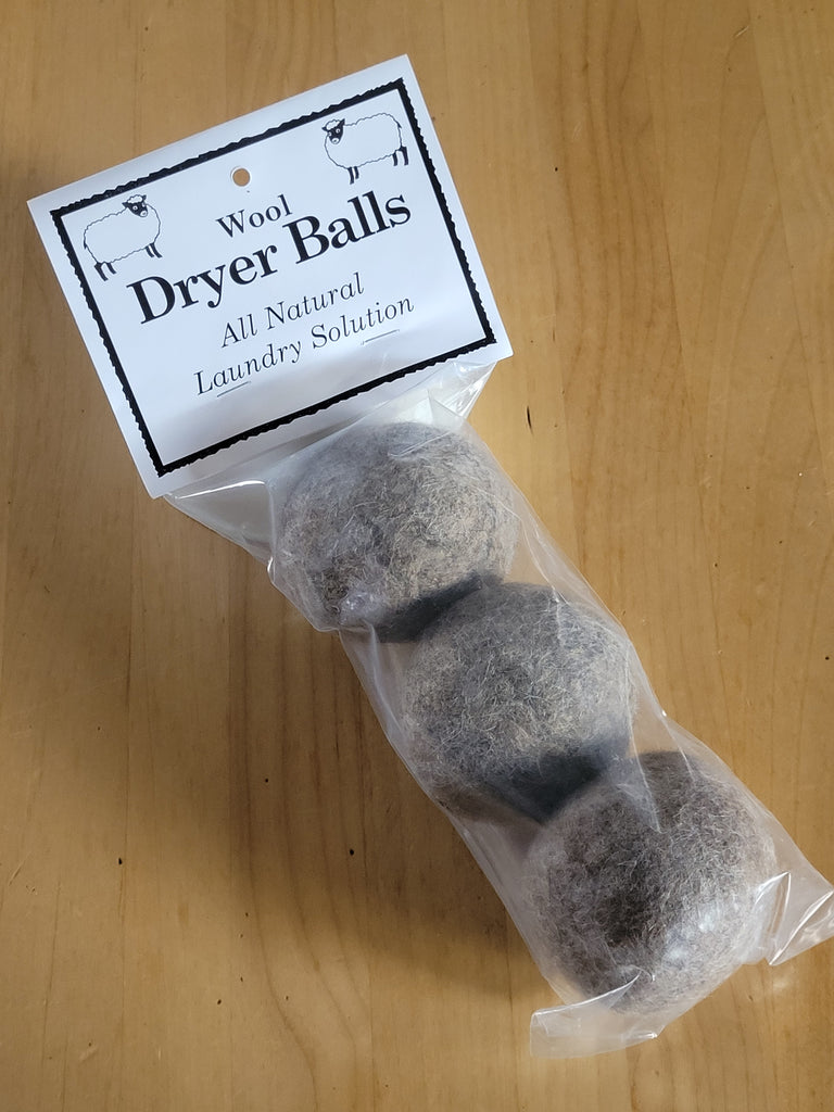 This set of three wool dryer balls works wonders for your laundry, reducing drying time, static, and wrinkles in your clothing - making dryer sheets unnecessary. They are made from 100% Colorado-grown wool (from our own sheep and occasionally our neighbors'), and measure approximately 3-4" in diameter. There is nothing to wear out in these dryer balls, and our own personal ones have been in use for over 7 years!