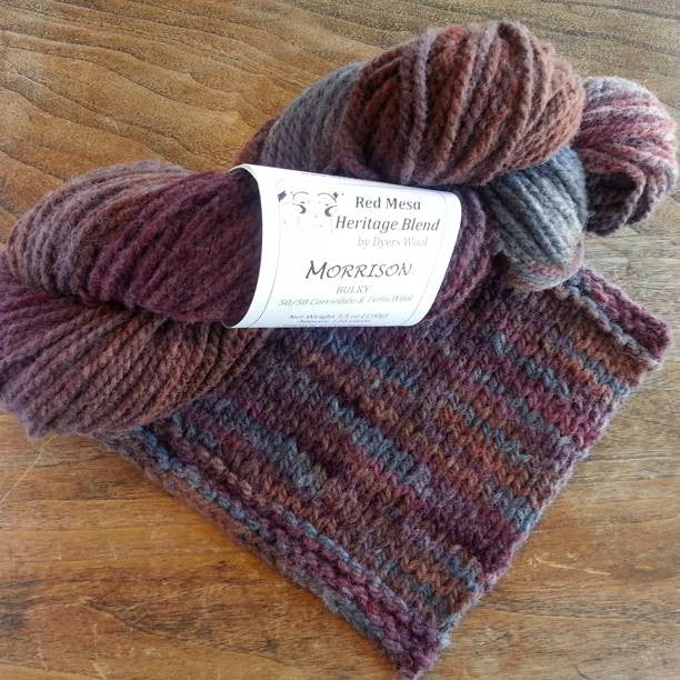 Our hand-painted Morrison Red Mesa Heritage Blend bulky yarn is a 50/50 blend of Colorado-Grown Corriedale & heritage Tunis wool** (sourced from our local farmer-friends), 2-ply mill-spun, in 3.5 oz skeins. The combination of Corriedale and heritage Tunis wool makes this yarn soft, bouncy, and elastic, with an amazing bloom (read more about why we call it Red Mesa Heritage Blend yarn here). Grown in Colorado and spun in the USA, this is not your average yarn!