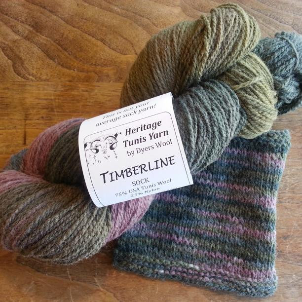 Our hand-painted Timberline sock yarn is 2-ply mill-spun, 75% Colorado-Grown heritage Tunis** wool & 25% nylon, in 3.5 oz skeins. Grown in Colorado and USA-spun, this is not your average yarn!