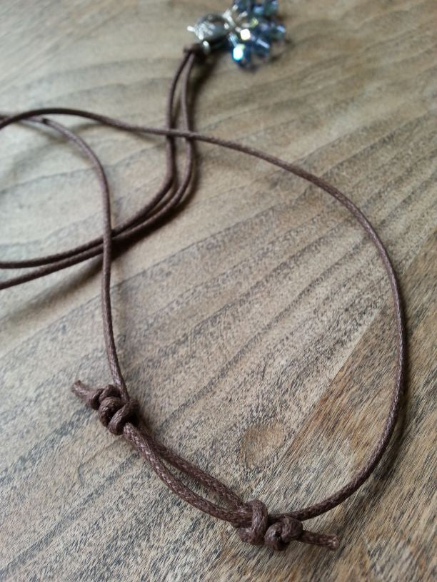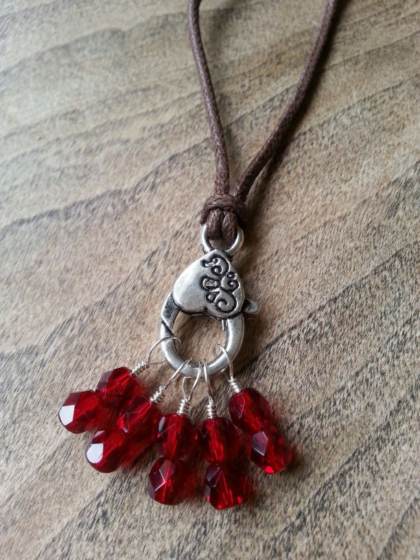 Garnet Stitch Marker Necklace, Pewter Clasp and Czech Crystal on 30" Adjustable Cotton Cord
